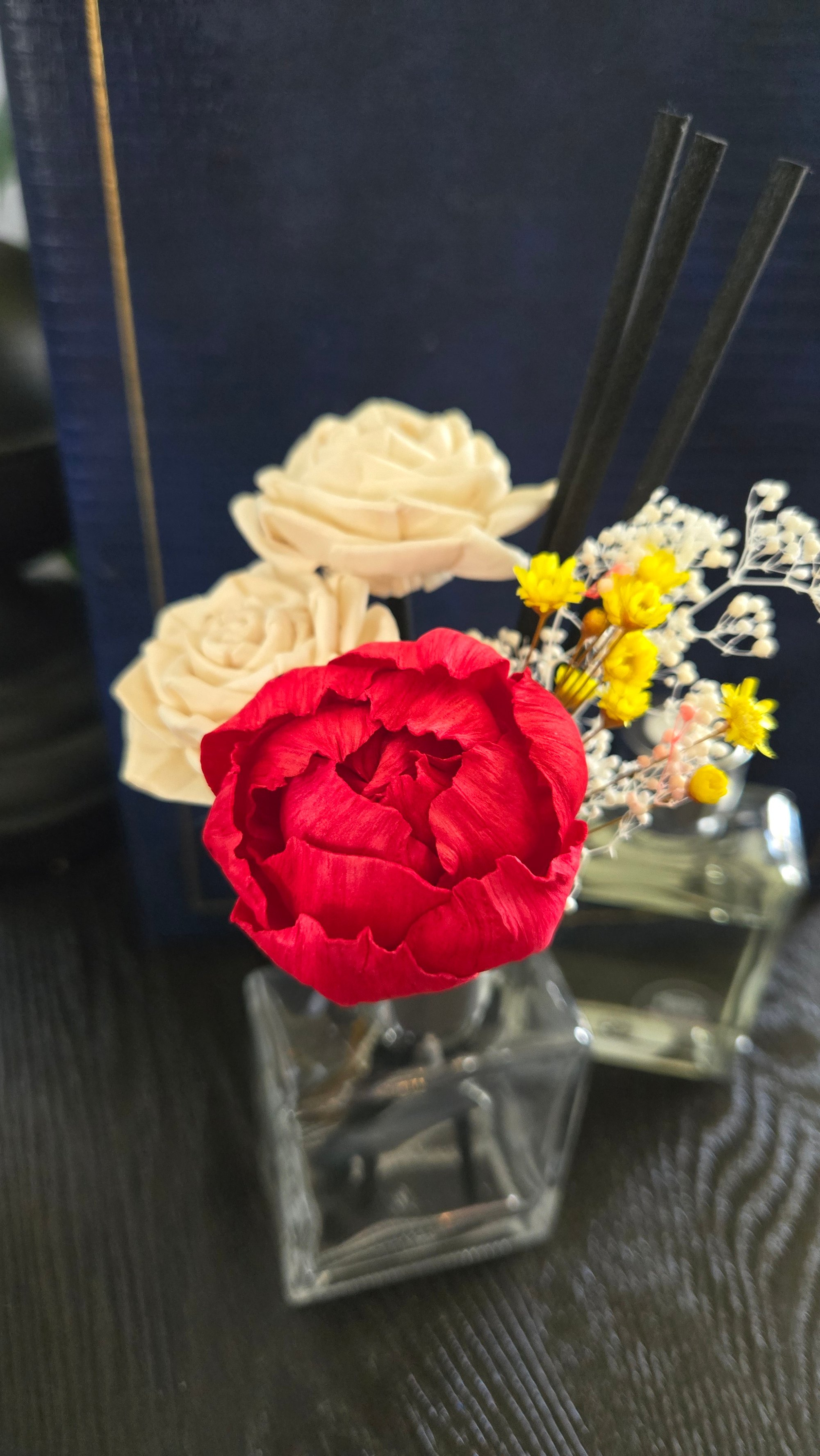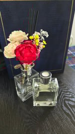 My dainty collection is absolutely beautiful! This one comes with a 2 inch roped red peony flower, 2 white flowers, set with preserved white baby's breath, yellow star flowers and several black reed sticks. I recommend that they come with the new square jar to keep the elegant polished look. This bouquet is a one of a kind, act fast! 💕